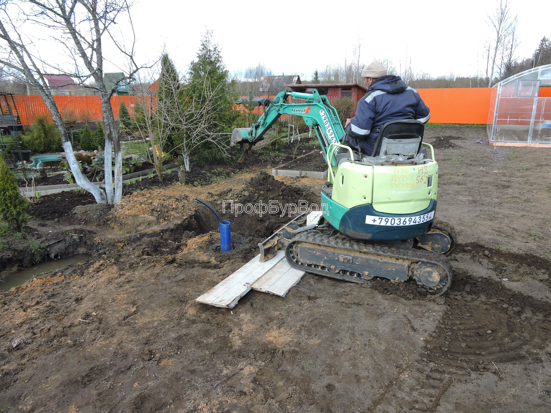 Скважину обустроили пластиковым кессоном. Работы проводились с использованием собственного экскаватора, благодаря чему были выполнены быстро и аккуратно. От кессона до дома мы проложили утепленную трассу для воды. По окончанию работ убрали весь мусор за собой и выполнили благоустройство.